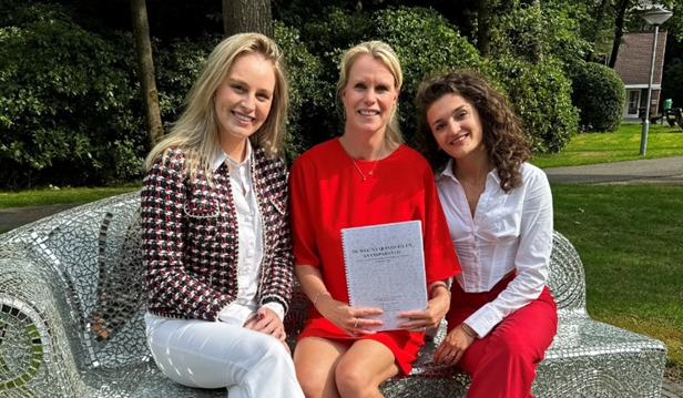Foto: Lynn Gijzen (links) en Fleur Mentink (rechts) met hun opdrachtgever Terry Hommelberg van Livera